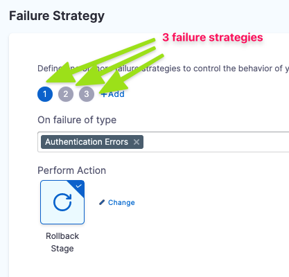 A stage can have multiple failure strategies.