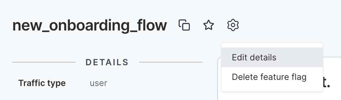 - Click the Gear icon next to the feature flag title and select Edit details. The Details view appears.