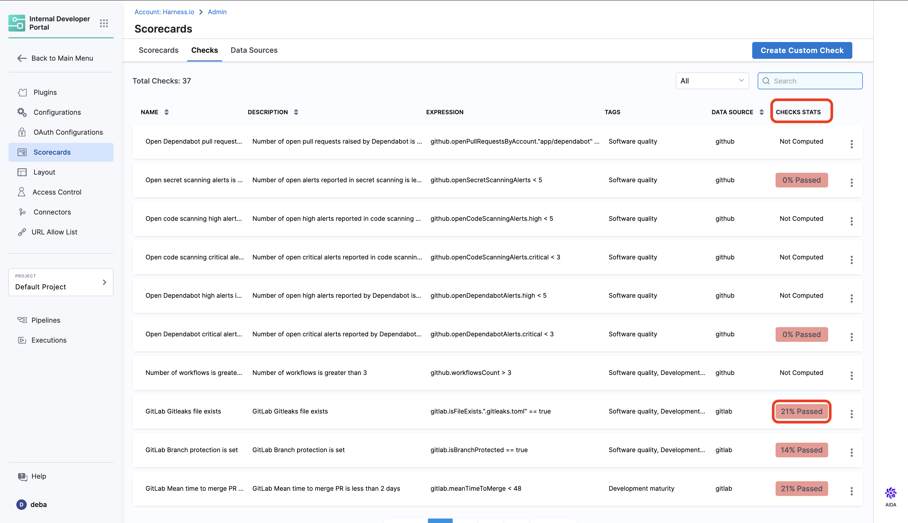Harness IDP allows you to integrate various data sources and implement custom checks to ensure your software components adhere to best practices and compliance. In this docs, we'll walk through how to add custom checks and data sources for scorecards in Harness IDP.