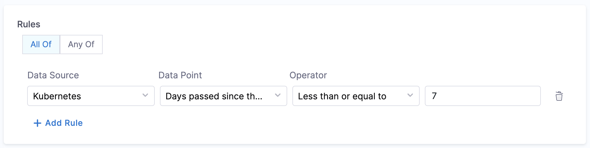 - Is on-call Set - This data point can be used for creating rules that will check if the on-call is set for a given service.