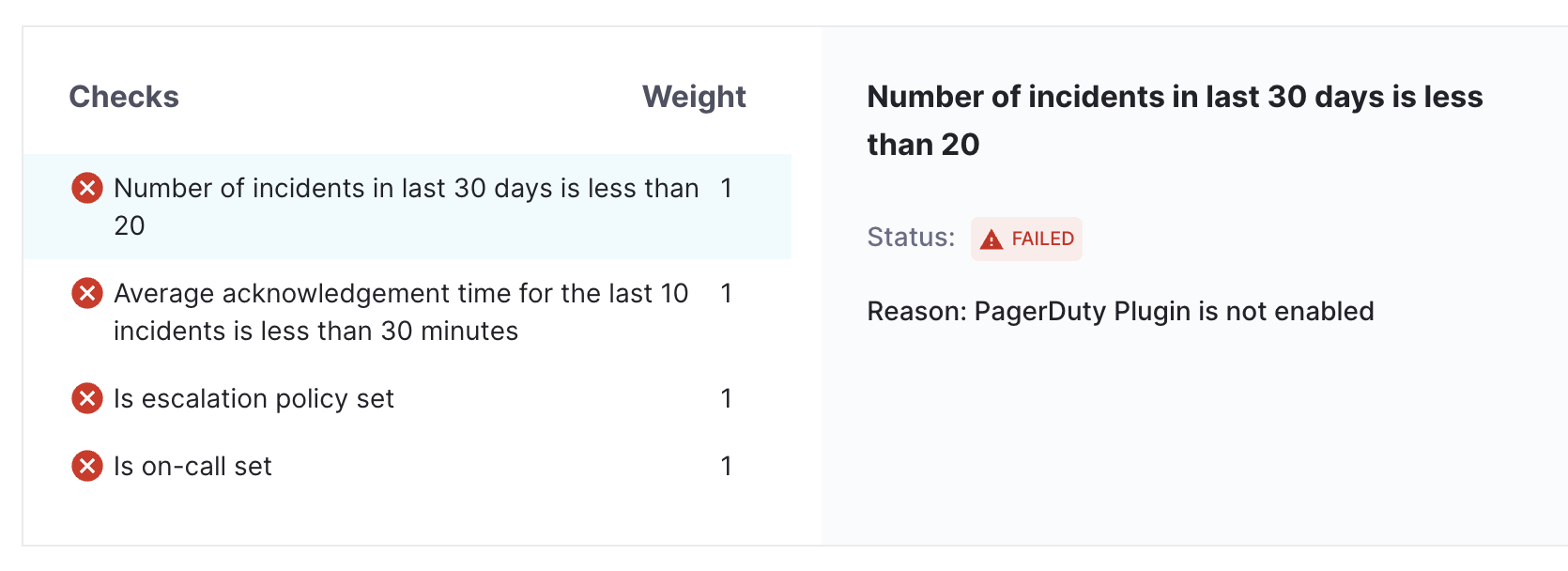 - In case checks fail because of PagerDuty plugin is not enabled we will get the error message in the failure summary.