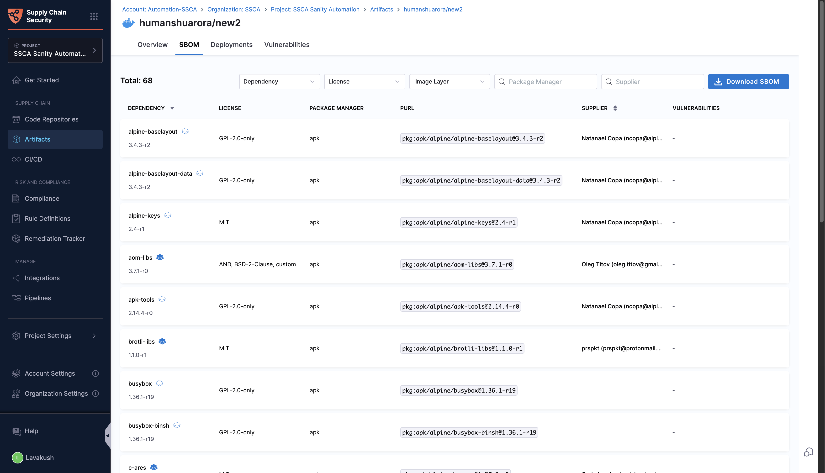 SBOM Tab